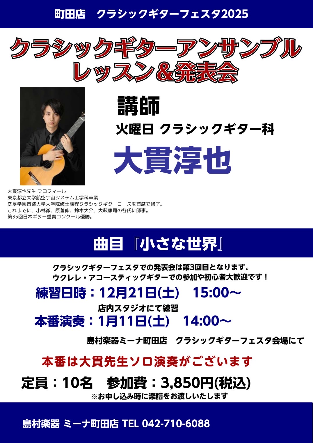 島村楽器町田店にて、「クラシックギターアンサンブル レッスン&発表会」を開催します! 今回で3回目です!
